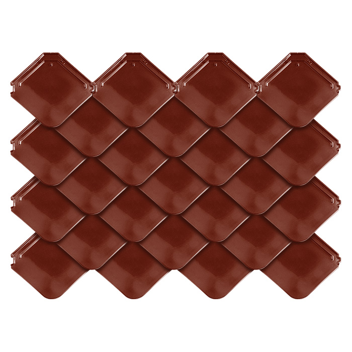 Ромбовидная черепица имеет непривычную форму, но именно благодаря ей поверхность крыши становится гладкой и не дает задерживаться влаге. Такую черепицу легко укладывать, она позволяет изменять форму крыши. Ромбовидная форма помогает выполнить интересные современные архитектурные акценты на кровле и фасаде.